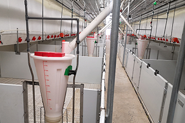多檔調(diào)節(jié)、超大容量、濕拌料設(shè)計提高采食量20% 以上,1個喂料器可飼喂40頭100公斤的育肥豬