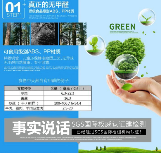 1、真正的無甲醛 可食用級(jí)別ABS PP材質(zhì) 優(yōu)質(zhì)鋼管,兒童環(huán)保靜電噴塑工藝,無異味無甲醛自然健康,專業(yè)可靠